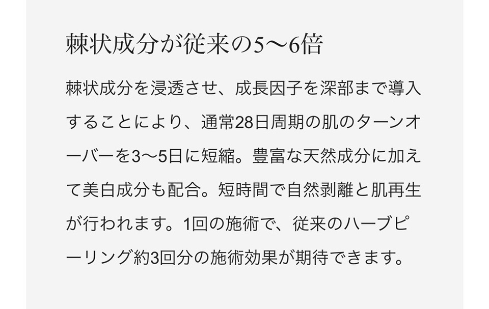 肌が活性化し、そのことで新しく細胞を再生しターンオーバーを正常化、健康的な肌が再生します。 - 初回